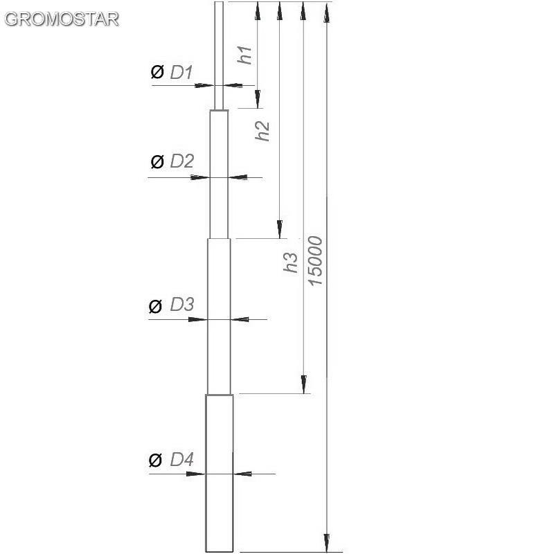 Молниеотвод 15 метров, предназначен для защиты зданий от попадания молнии при устройстве молниезащиты.