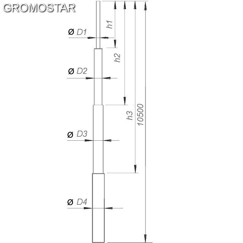 Молниеотвод 10,5 метров, предназначен для защиты зданий от попадания молнии при устройстве молниезащиты.