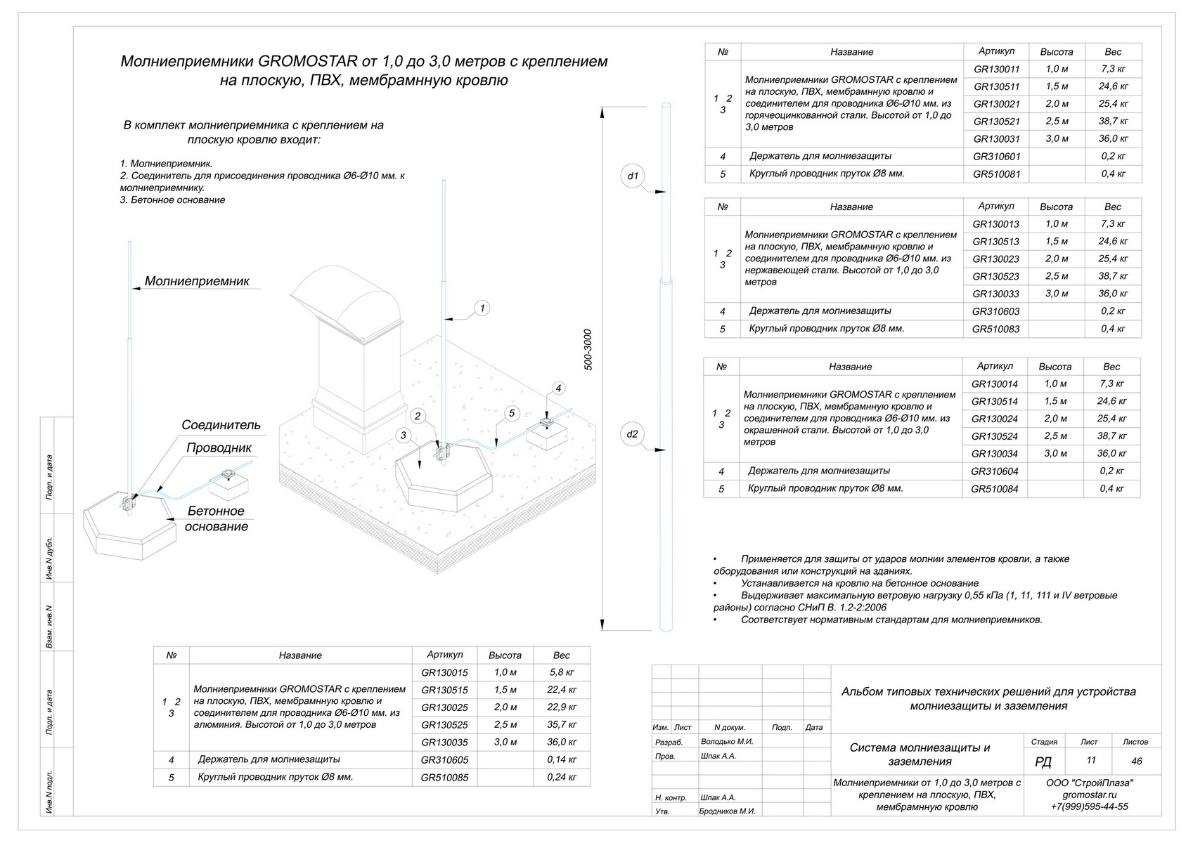 Соответствует нормативным документам, регламентирующим требования к молниезащите зданий: «Инструкция по молниезащите зданий и сооружений» РД 34.21.122-87 от 30 июля 1987 года и «Инструкция по устройству молниезащиты зданий, сооружений и промышленных коммуникаций» CO 153-343.21.122-2003 от 30 июня 2003 г.