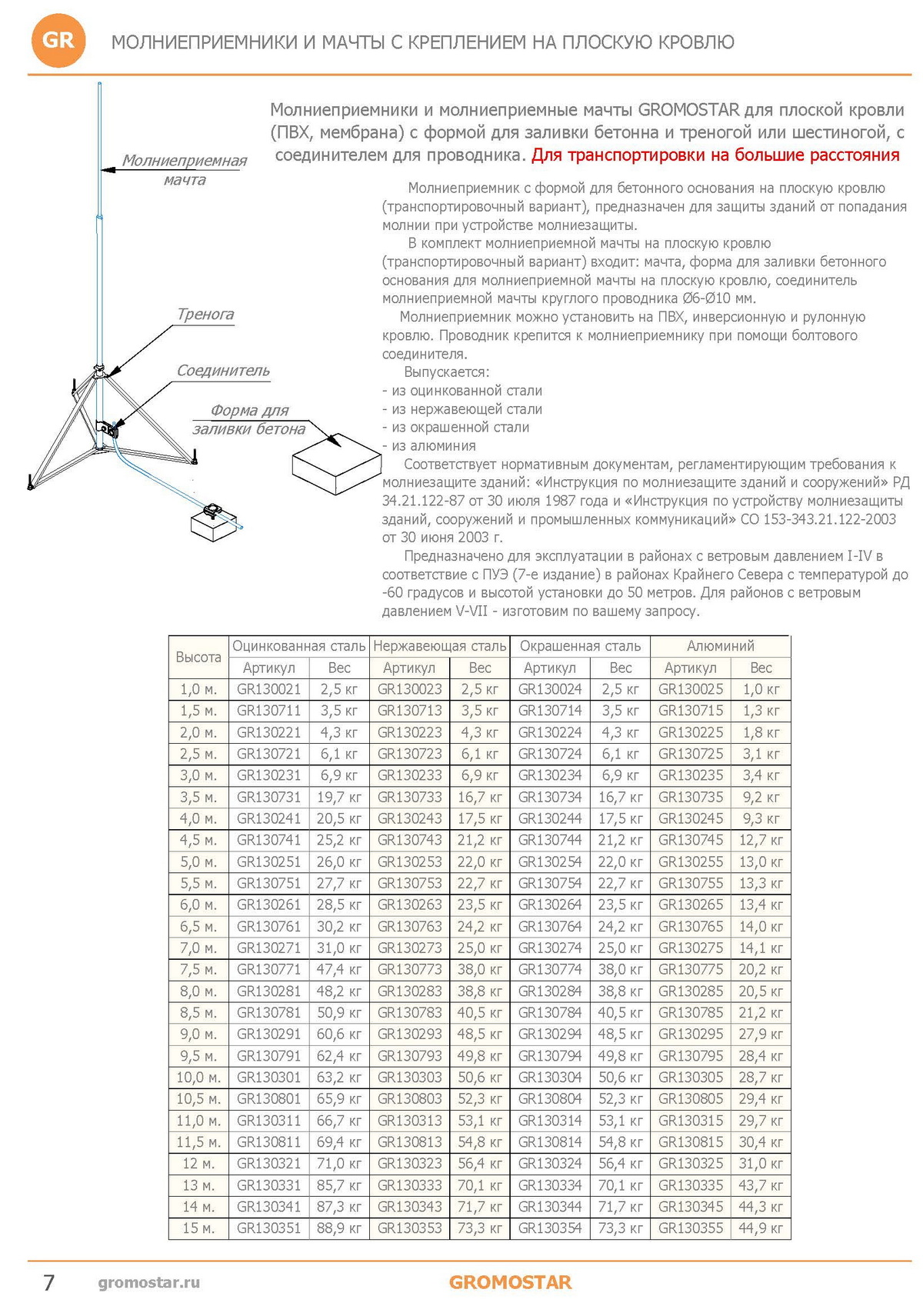 Молниеприёмная мачта 8 метров на плоскую кровлю с рамкой для бетонных плит, предназначен для защиты зданий от попадания молнии при устройстве молниезащиты.