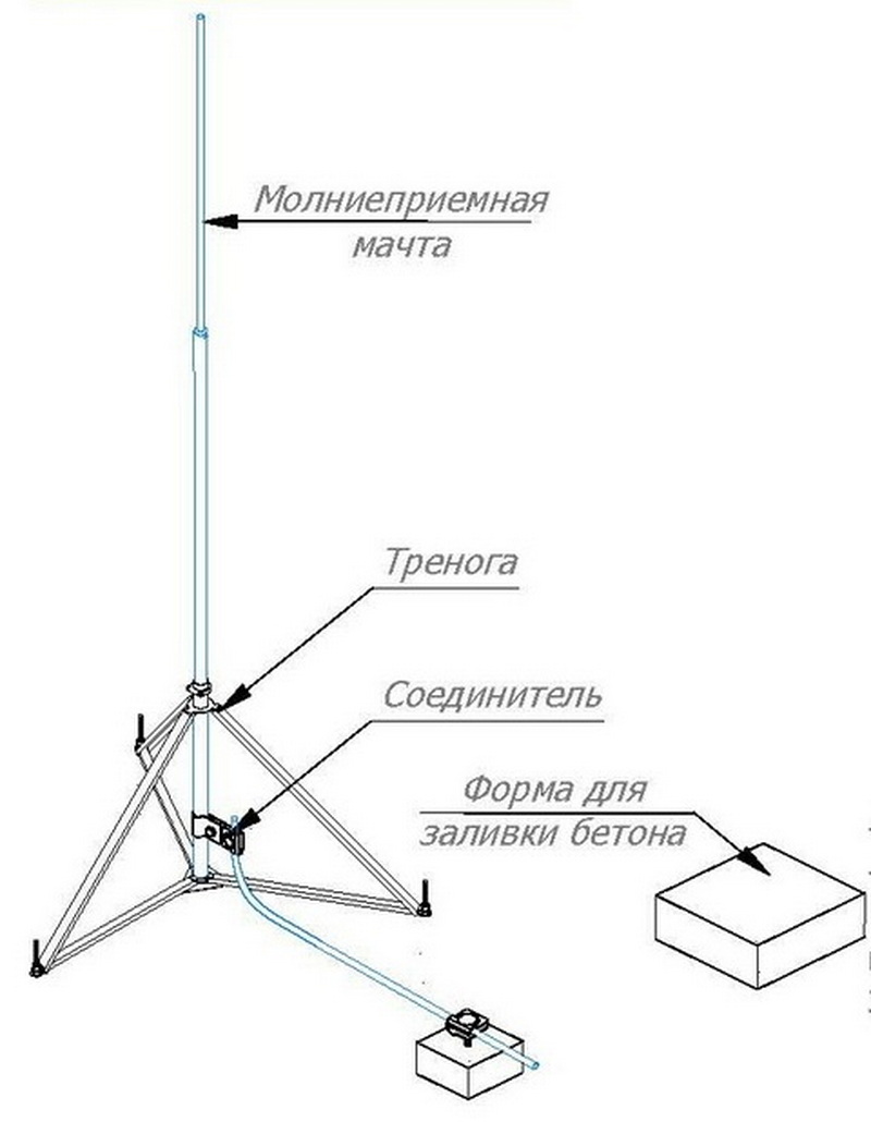 В комплект молниеприемной мачты с формой для бетонного основания 5,5 метров на плоскую кровлю (транспортировочный вариант) входит: мачта, форма для заливки бетонного основания для молниеприемной мачты на плоскую кровлю, соединитель молниеприемной мачты круглого проводника Ø6-Ø12 мм.
