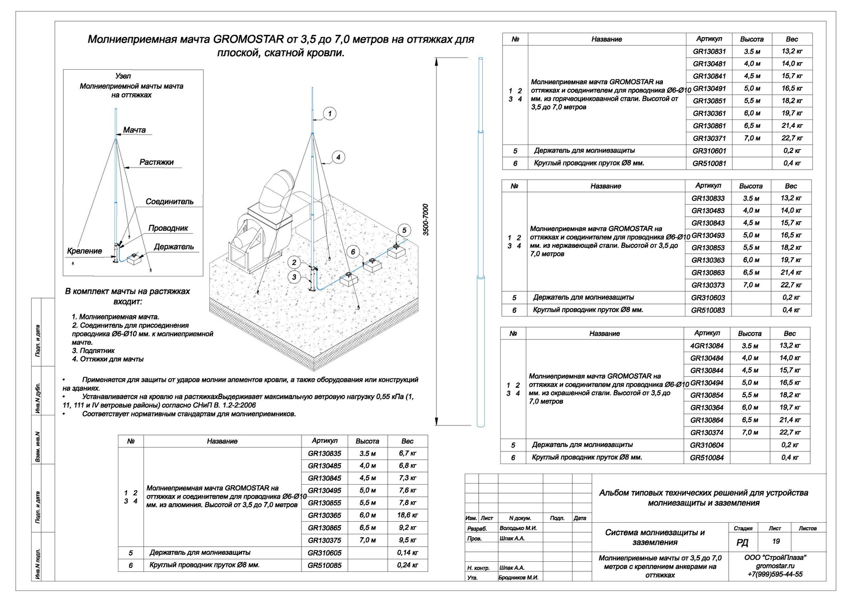 Молниеприемная мачта на анкерах и оттяжках 3,5 метра Громостар предназначен для молниезащиты зданий, сооружений, элементов крыши, и т.д., которые согласно технике безопасности, должны быть защищены от попадания молнии.