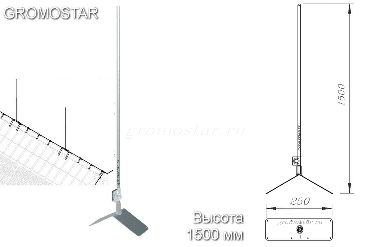 Молниеприёмник Громостар позволяет защитить объекты находящиеся в близи его установки.