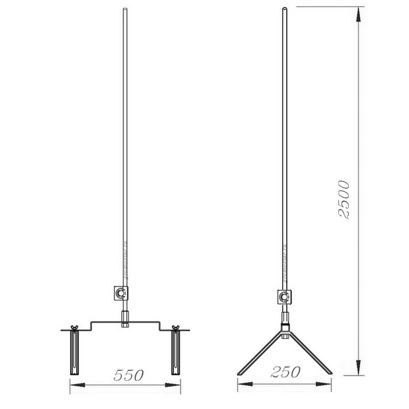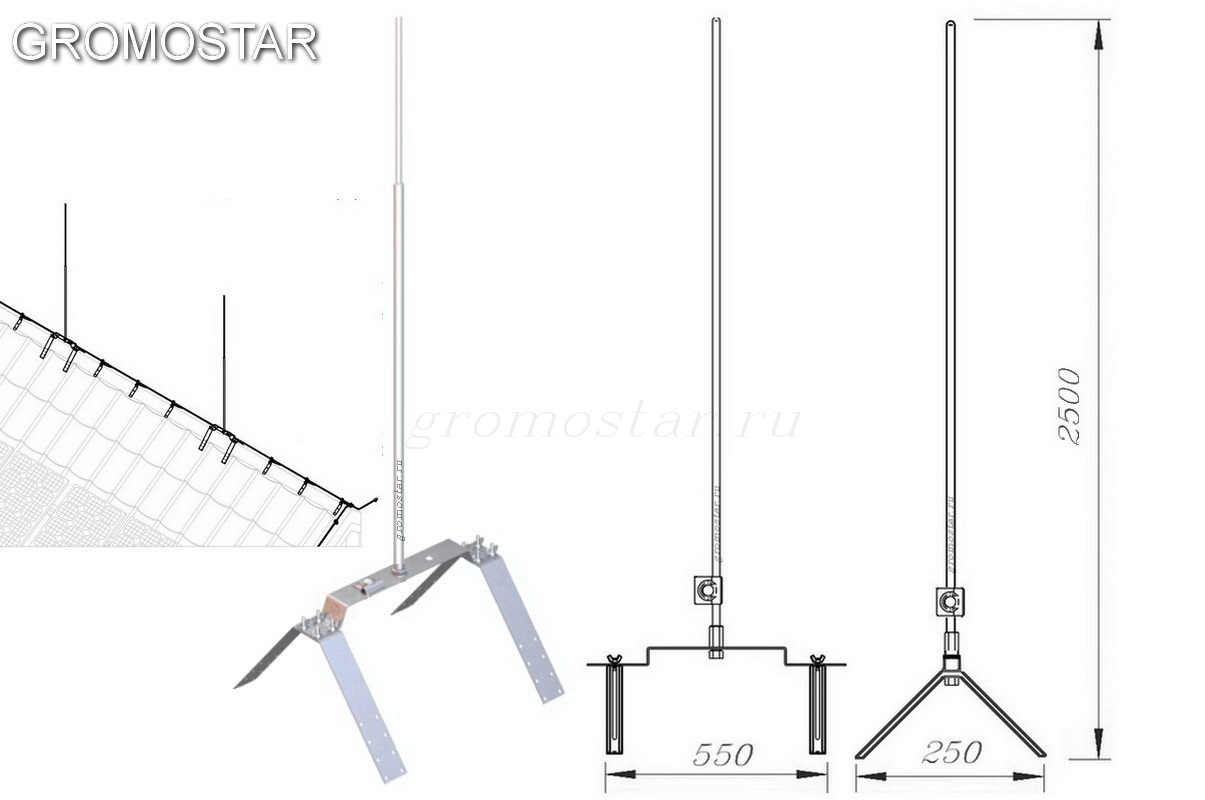 Подробности касающиеся способа установки и крепления найдете на сайте. Молниеприёмник выпускается из оцинкованной сталь St/Zn, меди Cu, нержавеющей стали VA и алюминия Al.
