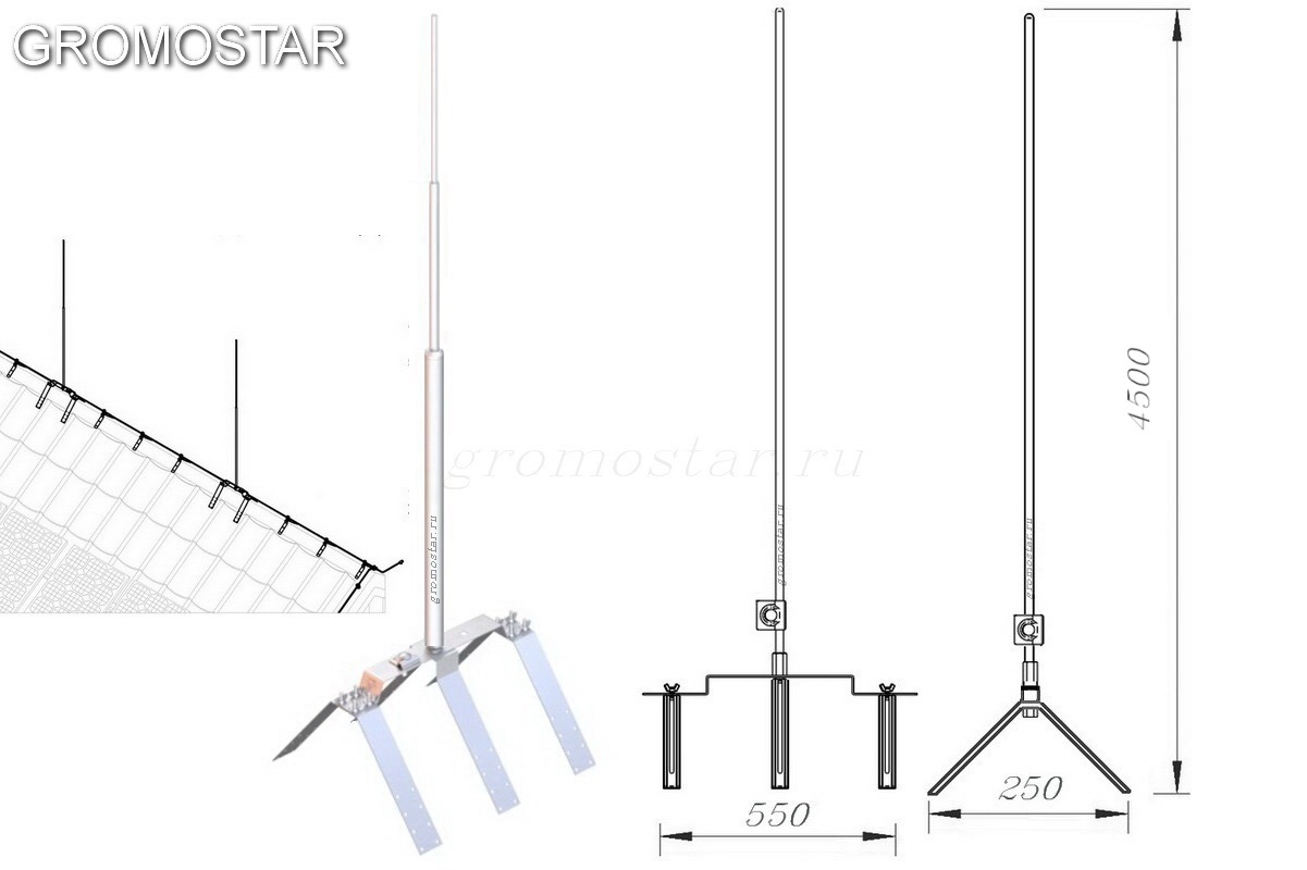 Молниеприёмник Громостар позволяет защитить объекты находящиеся в близи его установки.
