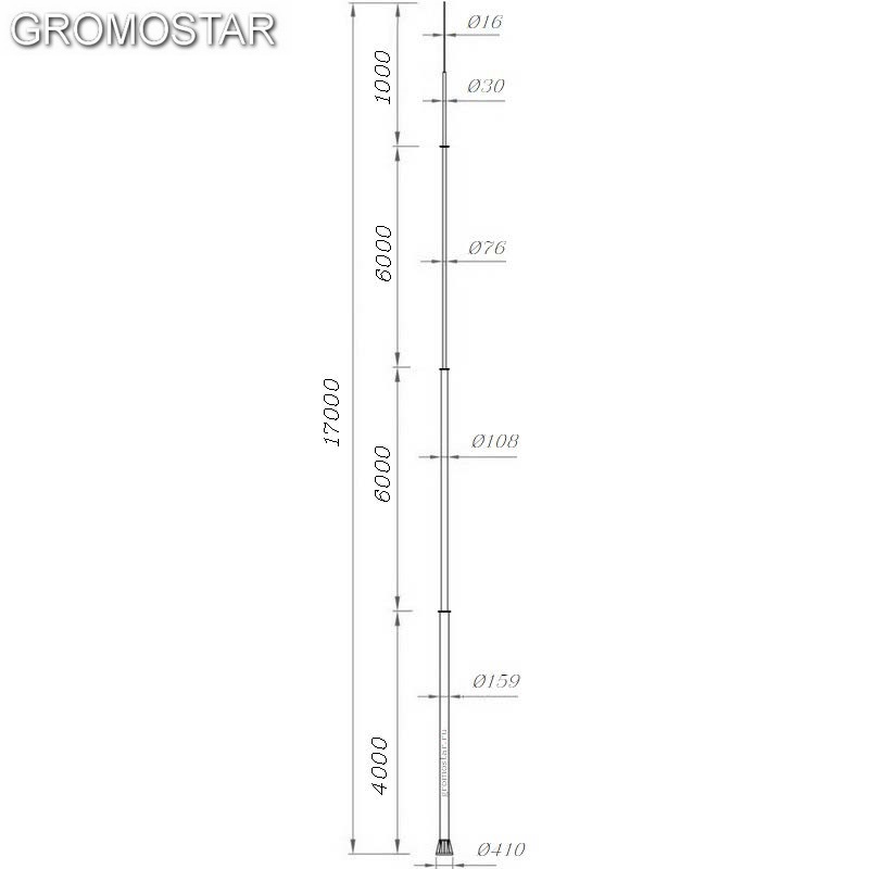 Отдельно стоящий молниеотвод высотой 17 метров с закладной деталью Громостар предназначен для молниезащиты зданий, сооружений, элементов крыши, и т.д., которые согласно технике безопасности, должны быть защищены от попадания молнии.