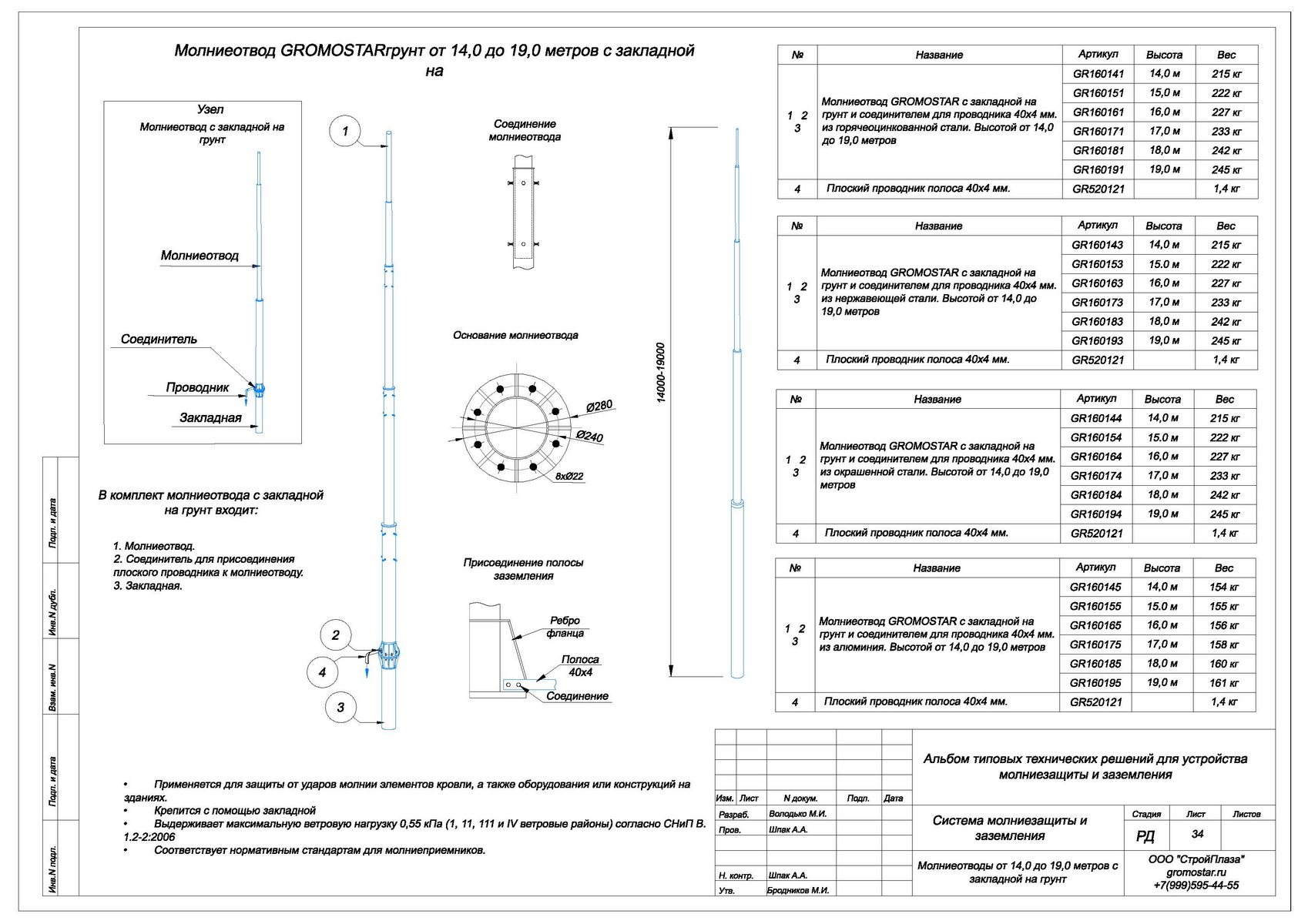 Отдельно стоящий молниеотвод высотой 18 метров с закладной деталью Громостар предназначен для молниезащиты зданий, сооружений, элементов крыши, и т.д., которые согласно технике безопасности, должны быть защищены от попадания молнии.