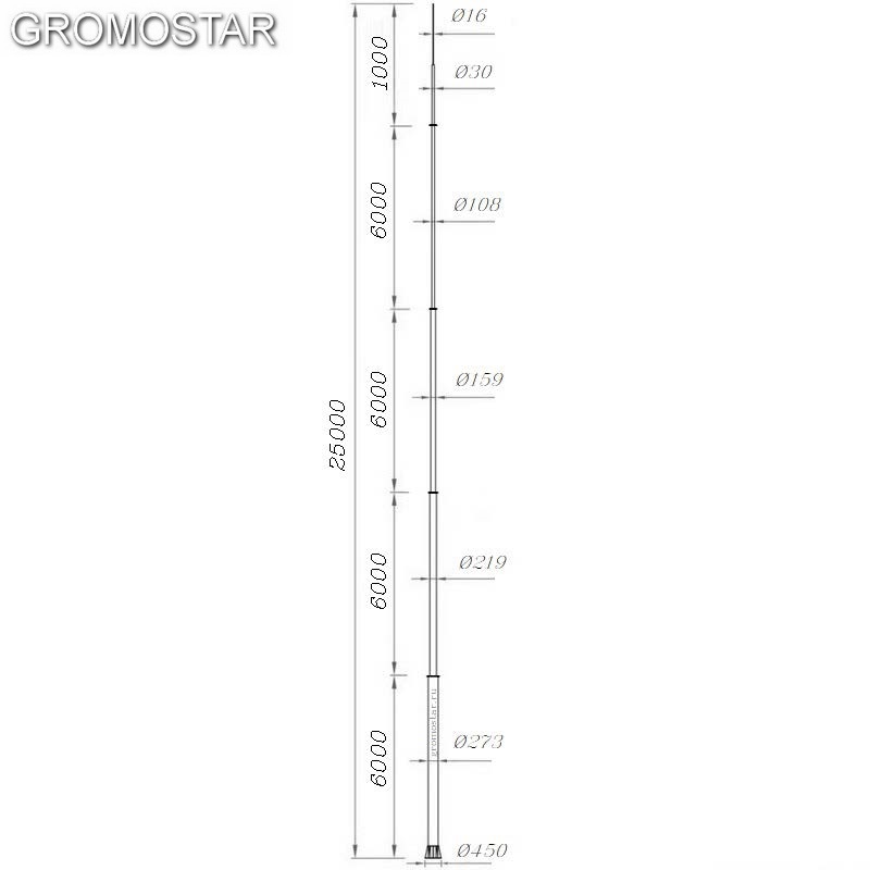 Отдельно стоящий молниеотвод высотой 25 метров с закладной деталью Громостар предназначен для молниезащиты зданий, сооружений, элементов крыши, и т.д., которые согласно технике безопасности, должны быть защищены от попадания молнии.