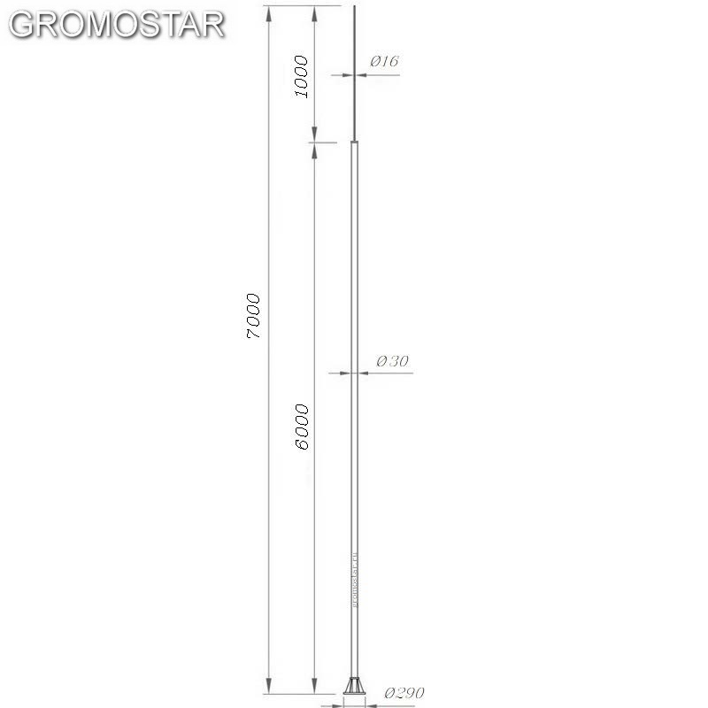 Отдельно стоящая молниеприемная мачта 7 метров GROMOSTAR с откидным механизмам для ручной установки имеет в составе: мачта, закладная, соединитель для присоединения мачты к проводнику. Молниеприемная мачта устанавливается на грунт.