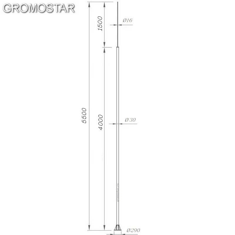 Отдельно стоящая молниеприемная мачта 5,5 метров GROMOSTAR с откидным механизмам для ручной установки имеет в составе: мачта, закладная, соединитель для присоединения мачты к проводнику. Молниеприемная мачта устанавливается на грунт.