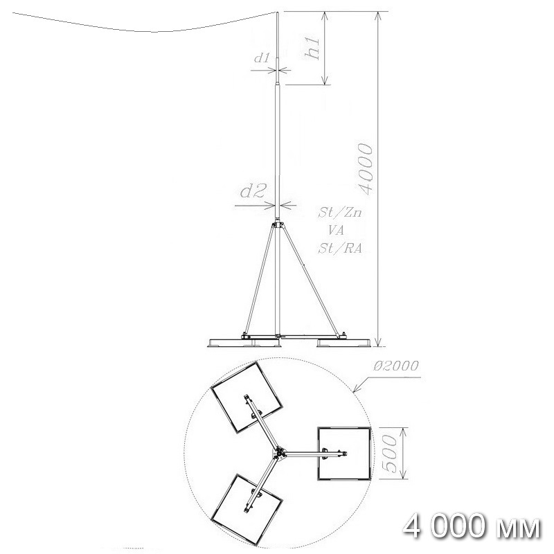 Мачта 4 метра для тросового молниеприёмника на треноге GROMOSTAR служит для защиты сооружений, зданий от прямого удара молнии. Предназначен для перехвата разряда молнии и отведение ее тока через подключенные к нему токоотводы.