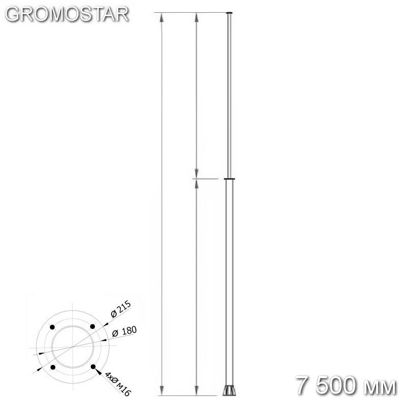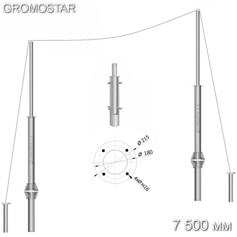 Мачта 7,5 метров для тросового молниеприёмника с закладной на грунт GROMOSTAR служит для защиты сооружений, зданий от прямого удара молнии. Предназначен для перехвата разряда молнии и отведение ее тока через подключенные к нему токоотводы.