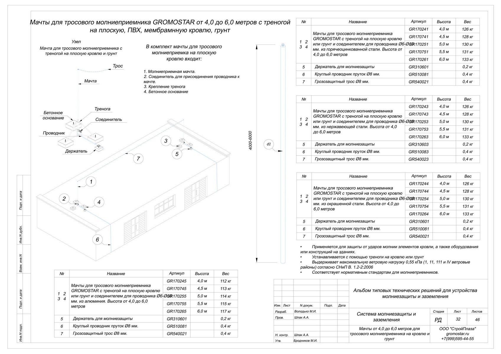 Мачта 5,5 метров для тросового молниеприёмника на треноге GROMOSTAR служит для защиты сооружений, зданий от прямого удара молнии. Предназначен для перехвата разряда молнии и отведение ее тока через подключенные к нему токоотводы.
