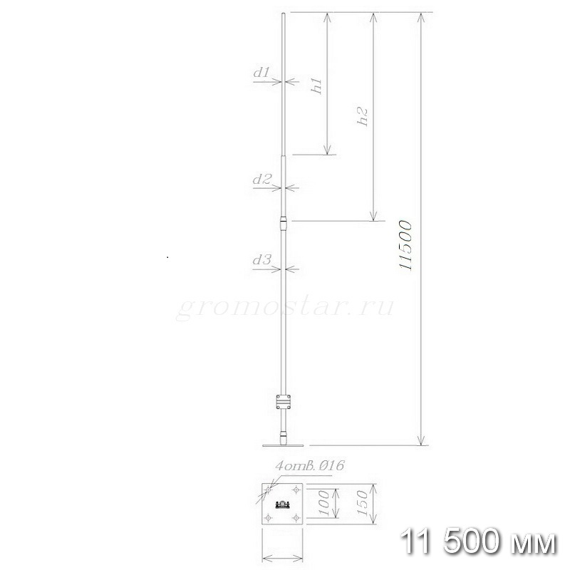 Мачта 11,5 метров для тросового молниеприёмника на растяжках GROMOSTAR служит для защиты сооружений, зданий от прямого удара молнии. Предназначен для перехвата разряда молнии и отведение ее тока через подключенные к нему токоотводы.