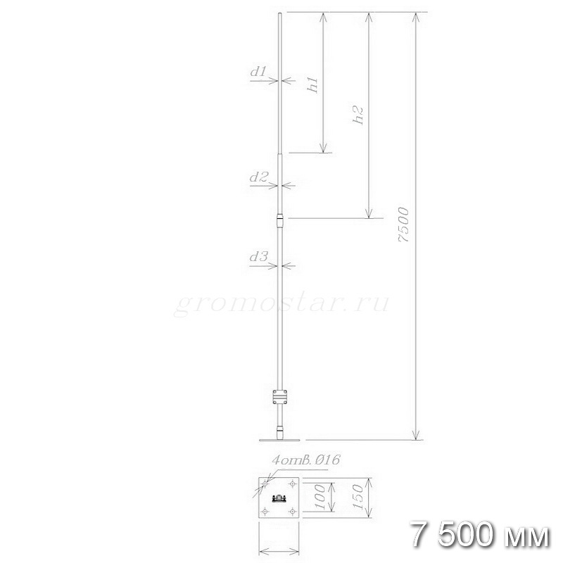 Мачта 7,5 метров для тросового молниеприёмника на растяжках GROMOSTAR служит для защиты сооружений, зданий от прямого удара молнии. Предназначен для перехвата разряда молнии и отведение ее тока через подключенные к нему токоотводы.