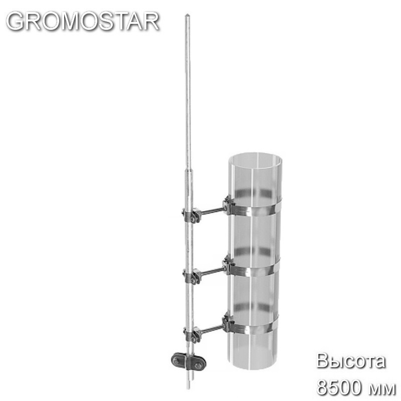 Молниеприёмная мачта высотой 8,5 метров с креплением на трубы из оцинкованной стали Громостар предназначен для молниезащиты зданий, сооружений, элементов крыши, и т.д., которые согласно технике безопасности, должны быть защищены от попадания молнии.