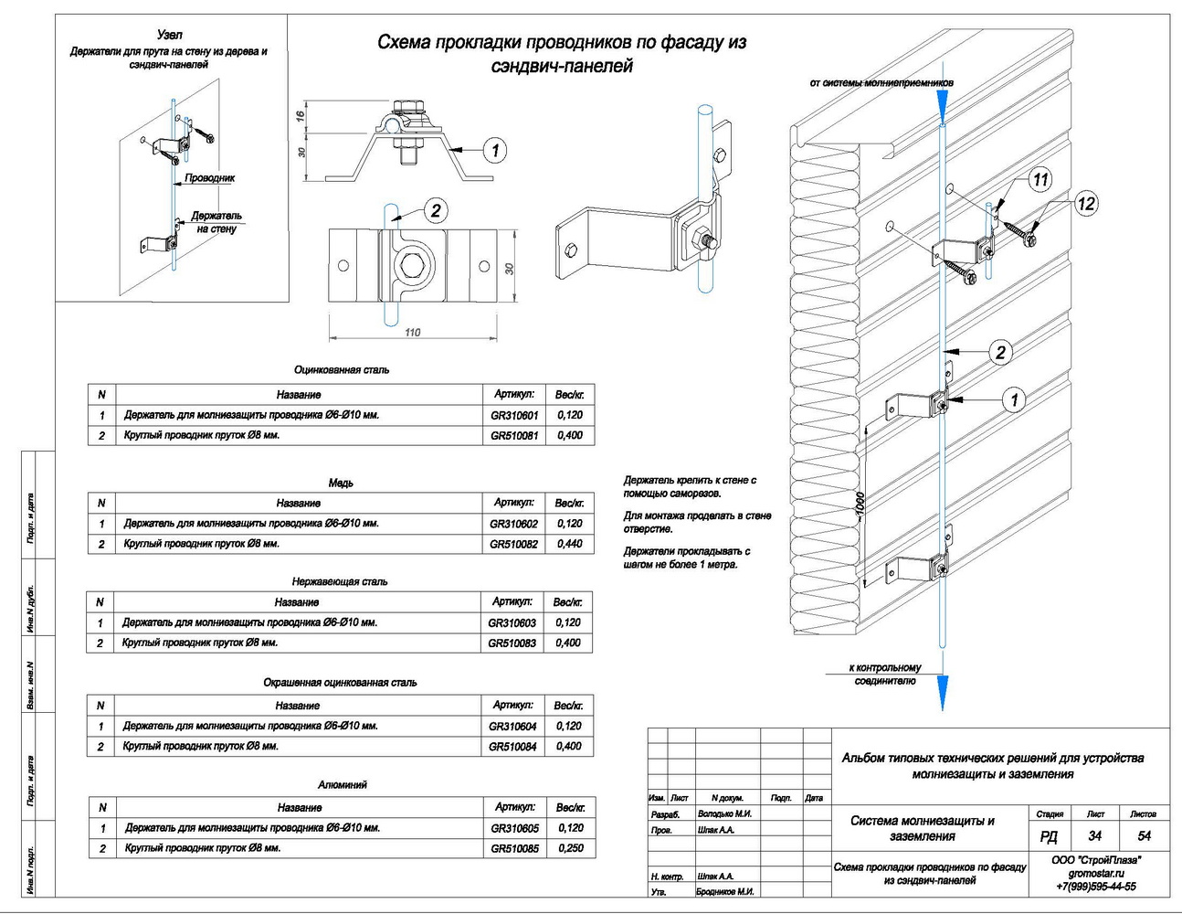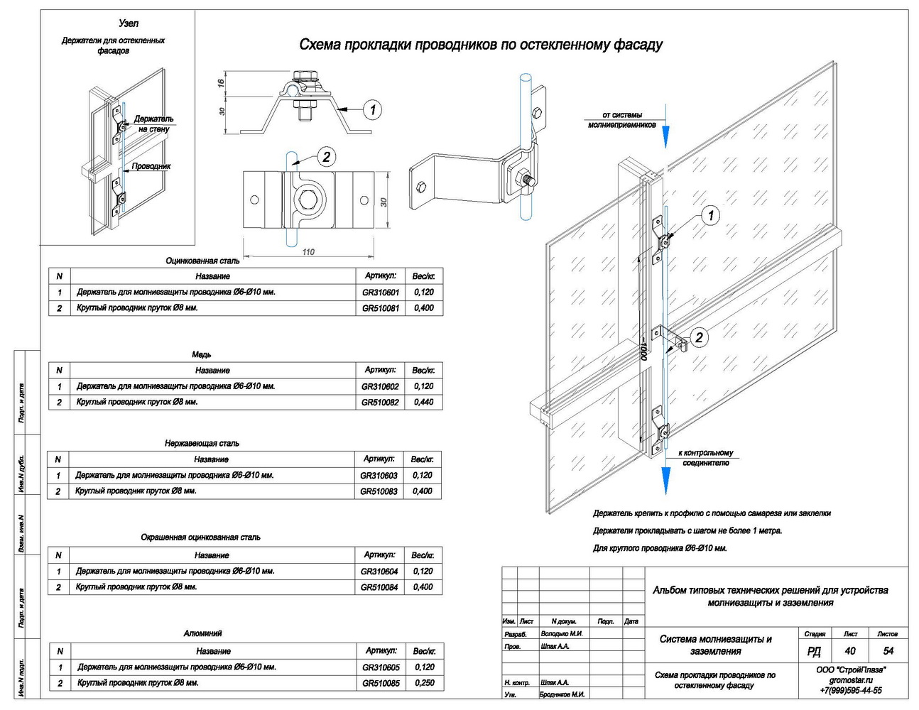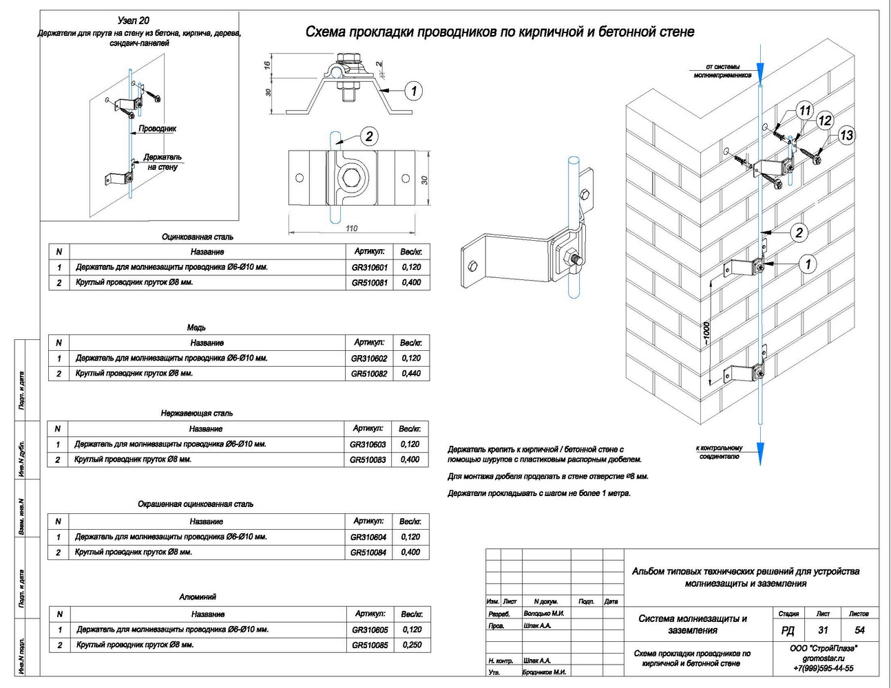 Подробности касающиеся способа установки и крепления найдете на сайте. Держатель выпускается из горячей оцинкованной стали St/Zn, меди Cu, нержавеющей стали VA и алюминия Al, латуни L.