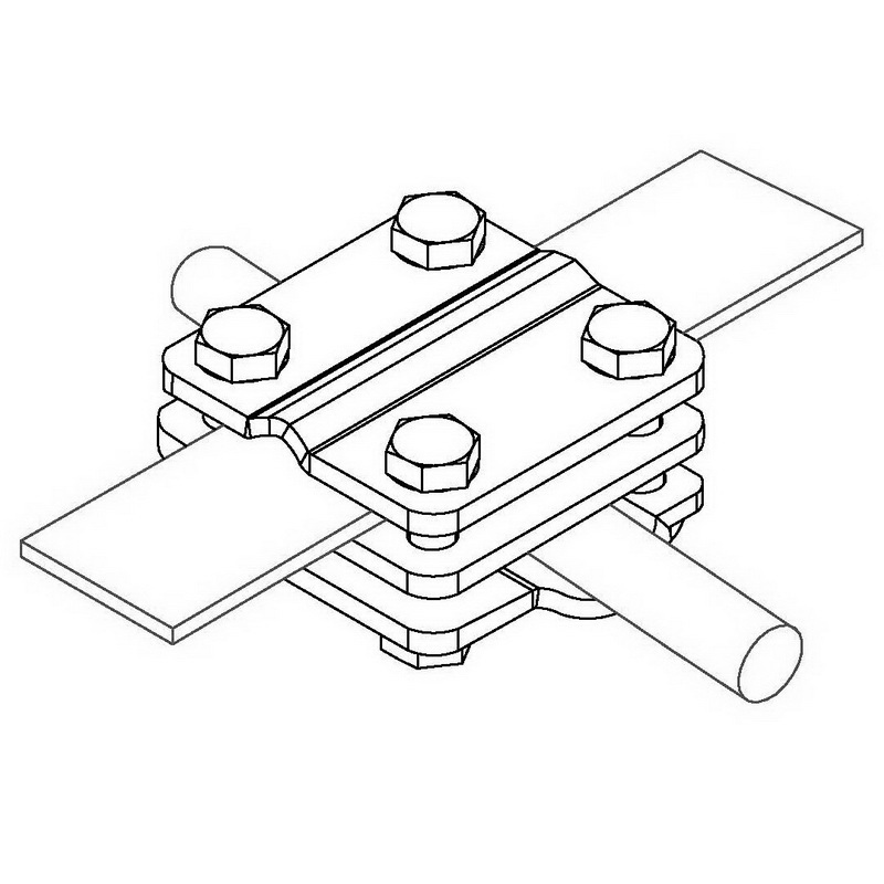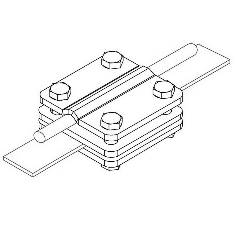 Соединитель Громостар позволяет соединить параллельно и перпендикулярно проводник Ø3-Ø6 мм. и полосу до 50 мм.