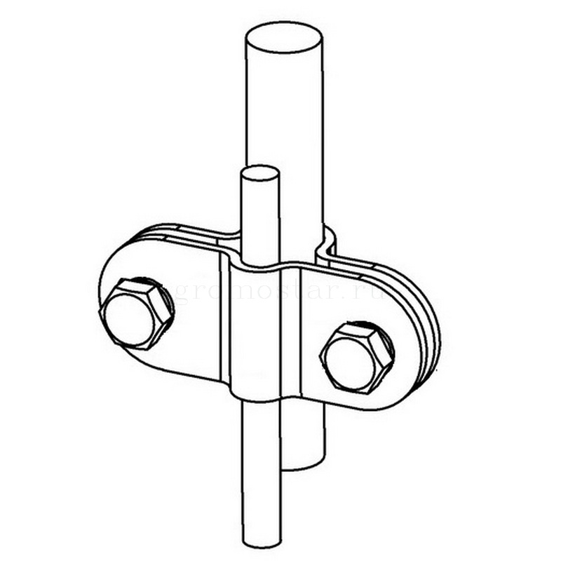 Соединитель Громостар позволяет соединить параллельно проводник Ø6-Ø10 мм. и молниеприёмник Ø8-Ø12 мм.