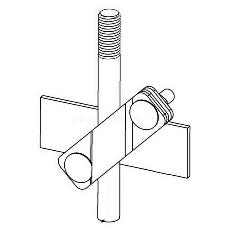 Соединители заземления диагональные для стержня Ø12-Ø14 мм. и полосы 25-60 мм. 3 пластины Gromostar, предназначен для соединения стержня заземления, полосы и круглого проводника при устройстве молниезащиты и заземления.