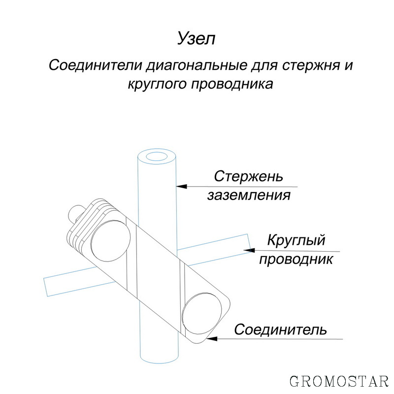 Соединители заземления диагональные для стержня Ø12-Ø14 мм. и круга Ø8-Ø12 мм. 3 пластины Gromostar, предназначен для соединения стержня заземления, полосы и круглого проводника при устройстве молниезащиты и заземления.