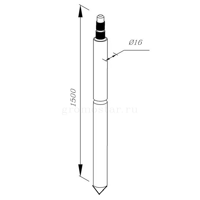 Стержень заземления Ø16х1500 мм. острый безмуфтовый для заземления выпускается из различных материалов.