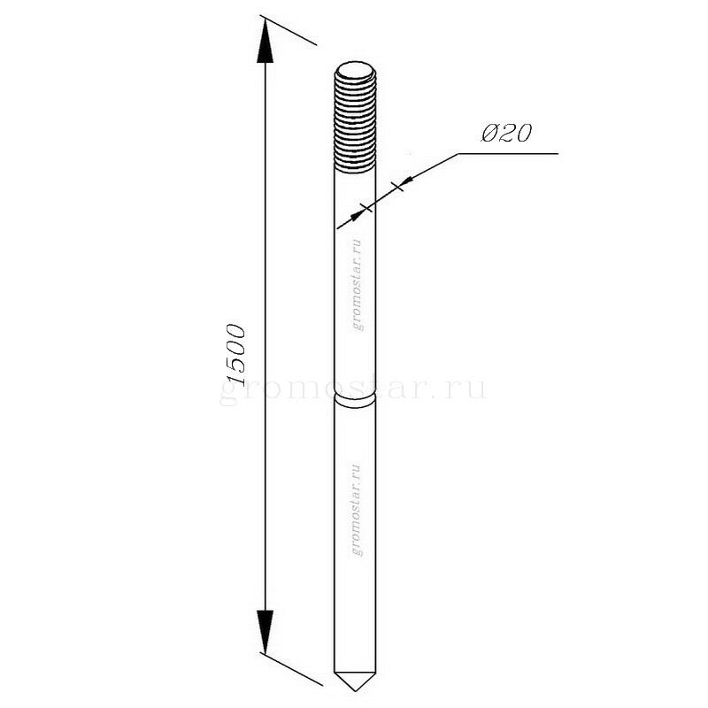 Стержень заземления острый Ø20х1500 мм. с резьбой для заземления выпускается из различных материалов.