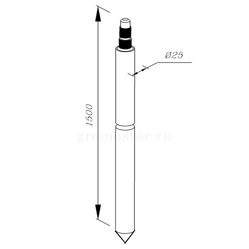 Стержень заземления Ø25х1500 мм. острый безмуфтовый для заземления выпускается из различных материалов.