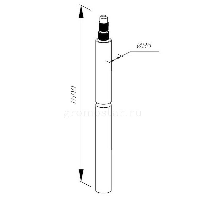 Стержень заземления Ø25х1500 мм. безмуфтовый выпускается из оцинкованной сталь St/Zn, меди Cu, нержавеющей стали VA, омеднённой стали St/Cu и стали St. Соответствует нормативным документам регламентирующими требования к молниезащите зданий: «Инструкция по молниезащите зданий и сооружений» РД 34.21.122-87 от 30 июля 1987 года и «Инструкция по устройству молниезащиты зданий, сооружений и промышленных коммуникаций» CO 153-343.21.122-2003 от 30 июня 2003 г.