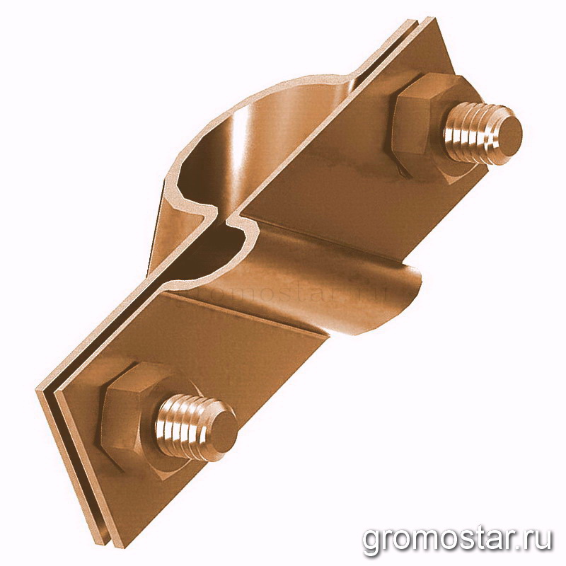 Соединитель стержня Ø14 мм., полосы 25-50 мм. и круга Ø8-Ø10 мм. для заземления Gromostar, предназначен для соединения стержня заземления, полосы и круглого проводника при устройстве молниезащиты и заземления.