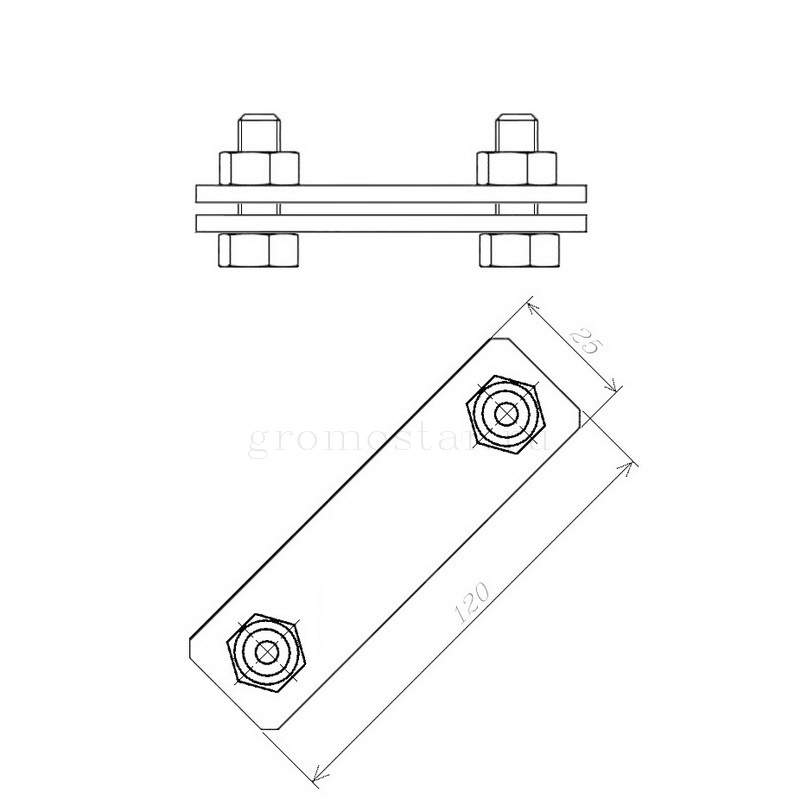 Соединитель полосы 25-50 мм. для заземления Gromostar, предназначен для соединения стержня заземления, полосы и круглого проводника при устройстве молниезащиты и заземления.