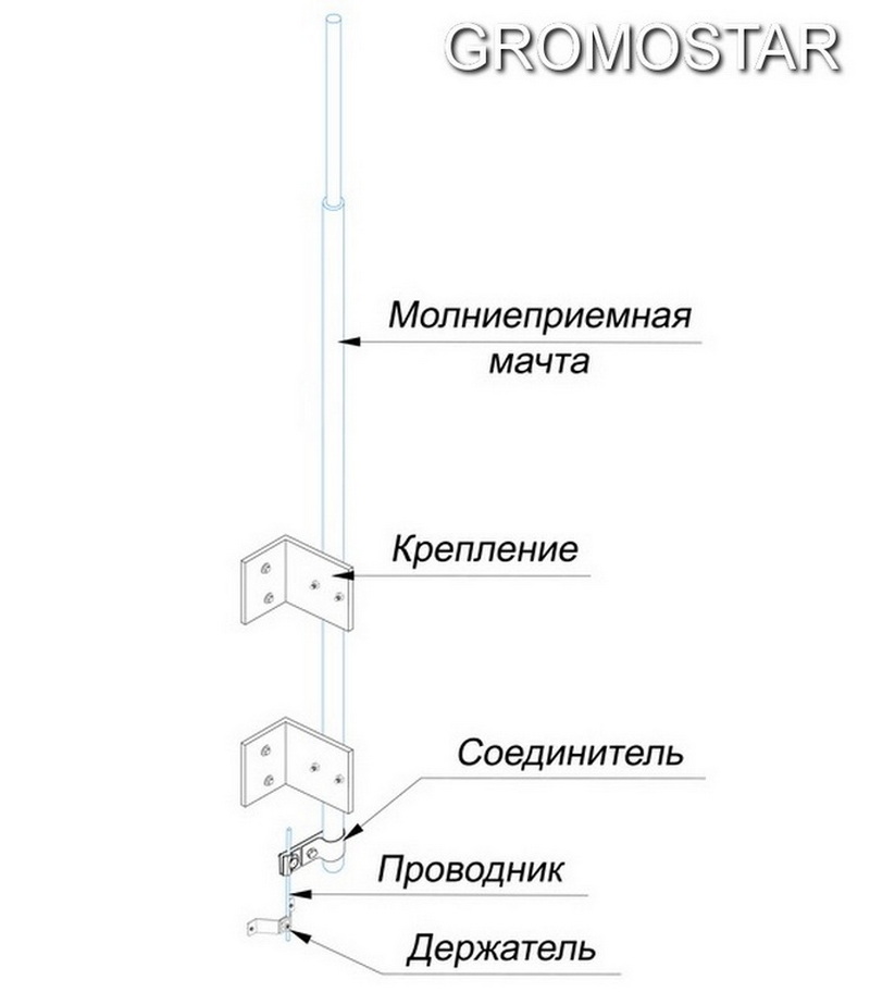 Молниеприёмная мачта Громостар позволяет защитить объекты находящиеся в близи его установки.