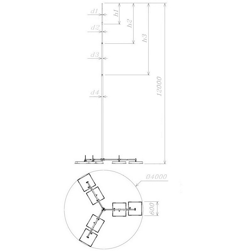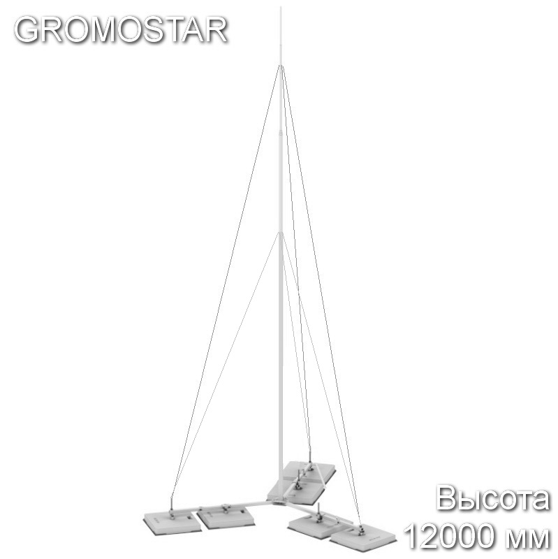 Молниеприемная мачта с креплением на плоскую кровлю 12 метров, предназначен для защиты зданий от попадания молнии при устройстве молниезащиты.
