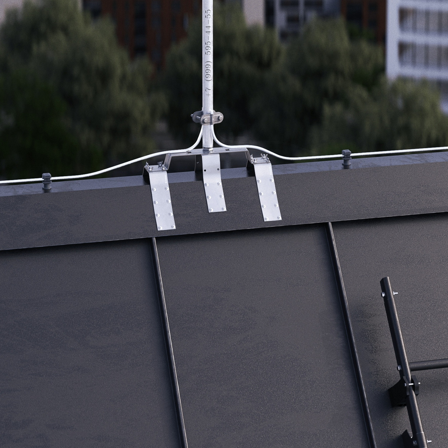 Возможна порошковая окраска молниеприёмника из оцинкованной стали, нержавеющей стали и алюминия в стандартные цвета RAL3009, RAL5001, RAL6002, RAL8002, RAL8004, RAL8019, RAL9005, RAL9006, RAL9007.