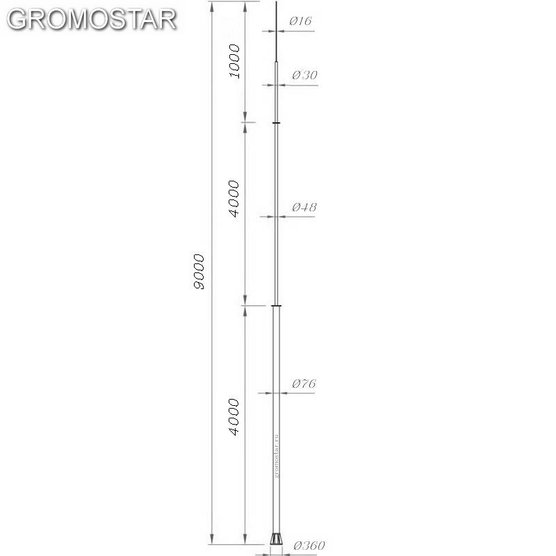 Отдельно стоящая молниеприемная мачта 9 метров GROMOSTAR на свае с откидным креплением для ручной установки предназначен для молниезащиты зданий, сооружений, элементов крыши, и т.д., которые согласно технике безопасности, должны быть защищены от попадания молнии.