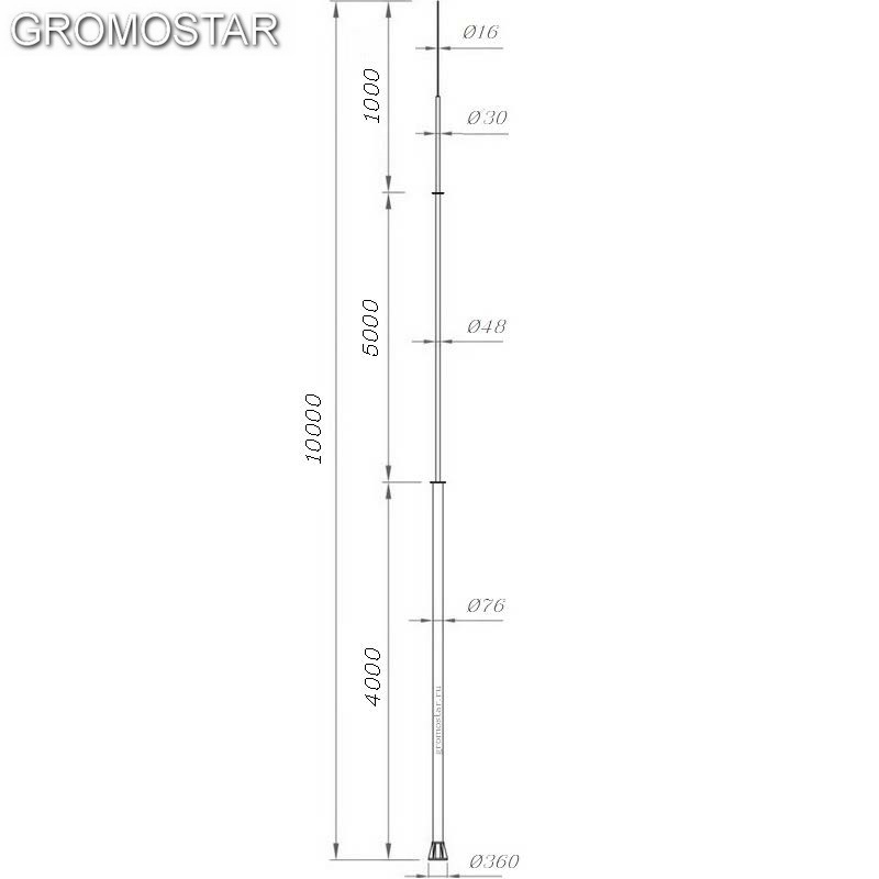 Отдельно стоящая молниеприемная мачта 10 метров GROMOSTAR на свае с откидным креплением для ручной установки предназначен для молниезащиты зданий, сооружений, элементов крыши, и т.д., которые согласно технике безопасности, должны быть защищены от попадания молнии.