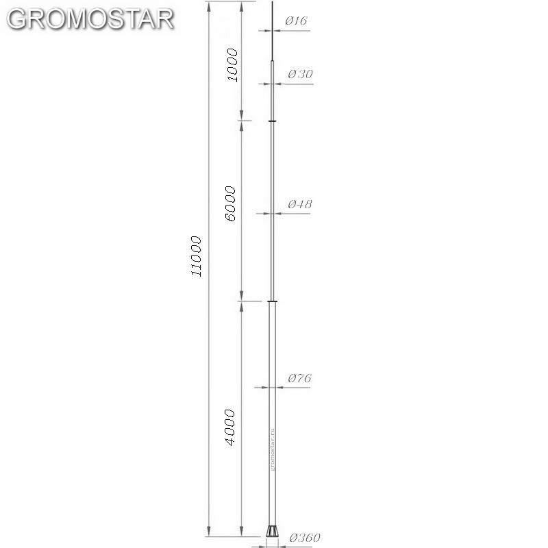 Отдельно стоящая молниеприемная мачта 11 метров GROMOSTAR на свае с откидным креплением для ручной установки предназначен для молниезащиты зданий, сооружений, элементов крыши, и т.д., которые согласно технике безопасности, должны быть защищены от попадания молнии.