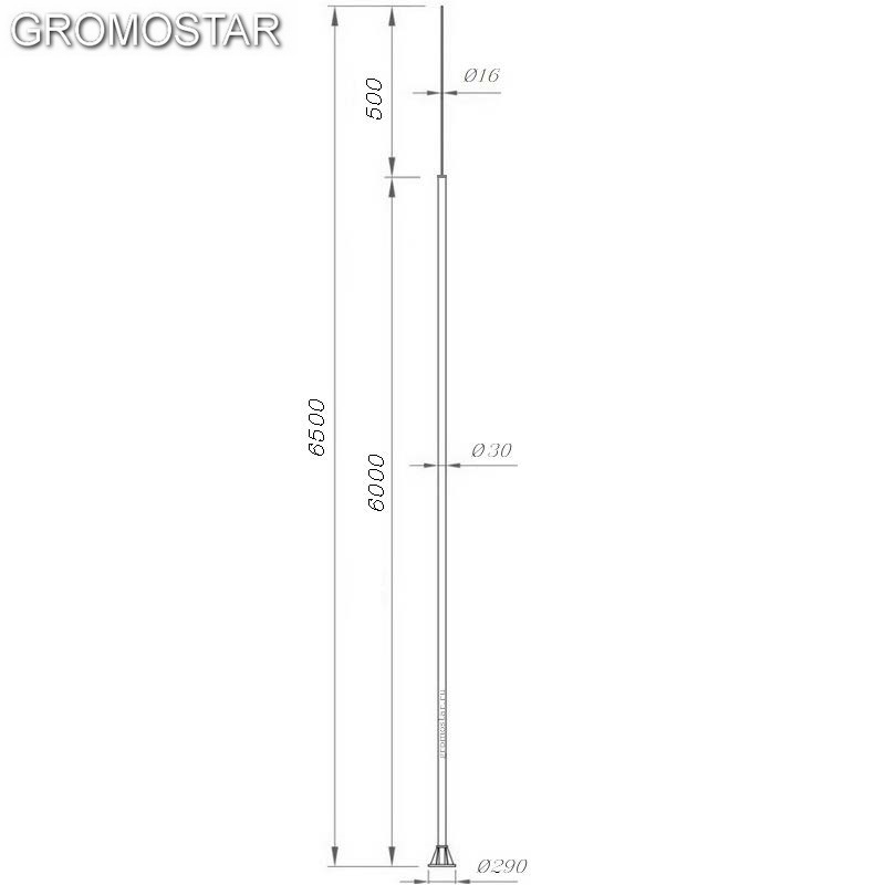 Отдельно стоящая молниеприемная мачта 6,5 метров GROMOSTAR на свае с откидным креплением для ручной установки предназначен для молниезащиты зданий, сооружений, элементов крыши, и т.д., которые согласно технике безопасности, должны быть защищены от попадания молнии.